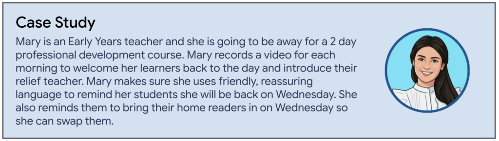 • Reminders – Add a video reminder of what work needs to complete or upcoming events they need to prepare for