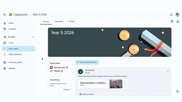 Here is an example of adding a video directly into your Classroom Stream.