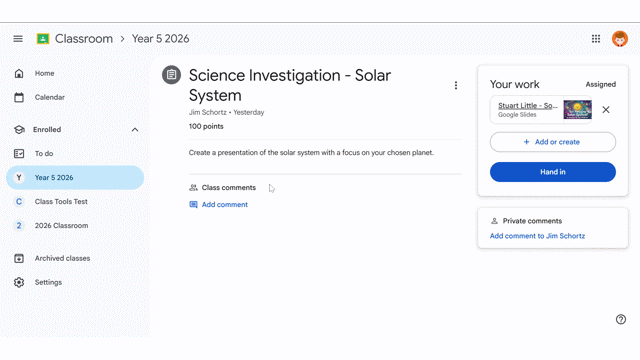 Have a look at the different ways students can submit work in Google Classroom.